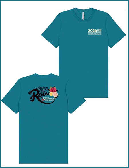 Support the Nashville Rose Society with your purchase of a Medley of Roses – 2026 ARS National Convention & Rose Show tee shirt with its beautiful logo as a souvenir of your time spent in Nashville.